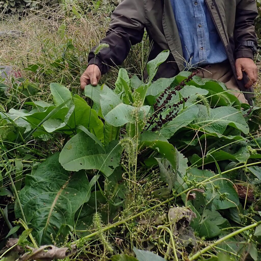 「自然農を学ぶ・さとやま農学校」のなかでは野菜だけでなく、野草や虫との付き合い方もじっくり学びます。写真は、農園の端に生えているギシギシです。