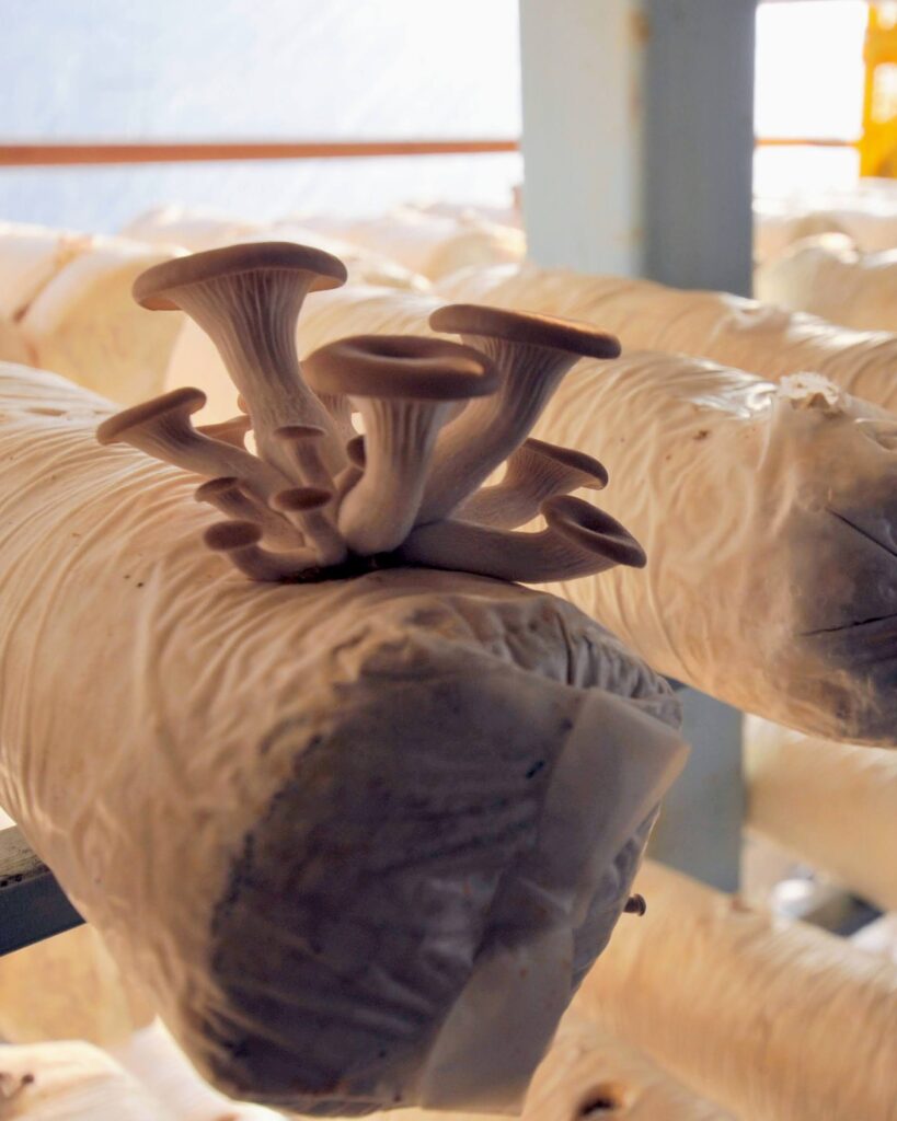 2枚目はキノコの栽培現場です。無言のキノコたちのオーラに包まれました。