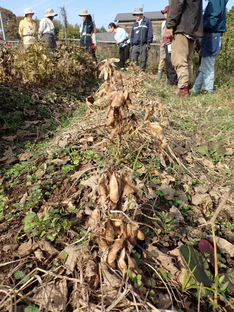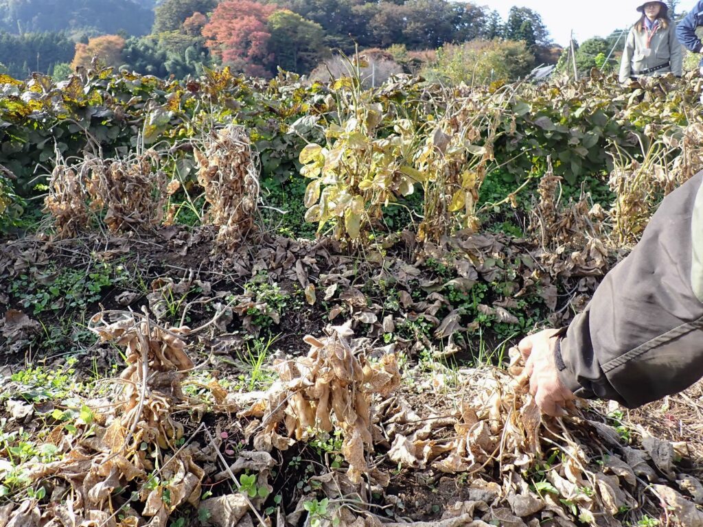 津久井在来は在来大豆なので、一般的な育成品種(多くは国や都道府県が育成した品種)と違って蔓化(まんか)しやすい。いわゆる「ツル呆け」です。茎葉が繁茂しすぎる反動で実が入らない。