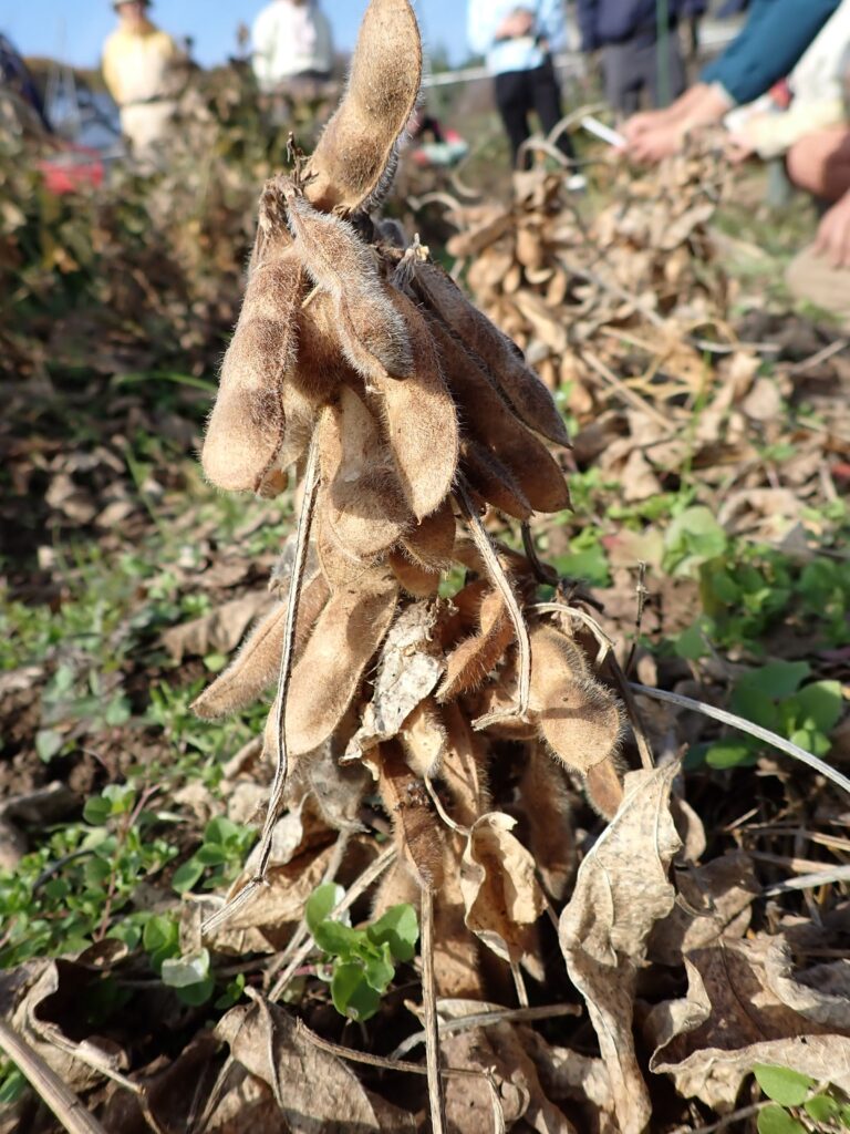 この時期の大豆は、一般的にほぼ黄色く枯れ落ちているのですが、この場合はどうでしょうか。