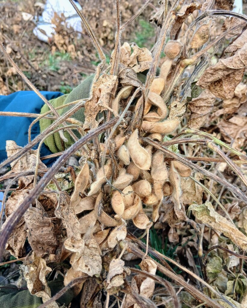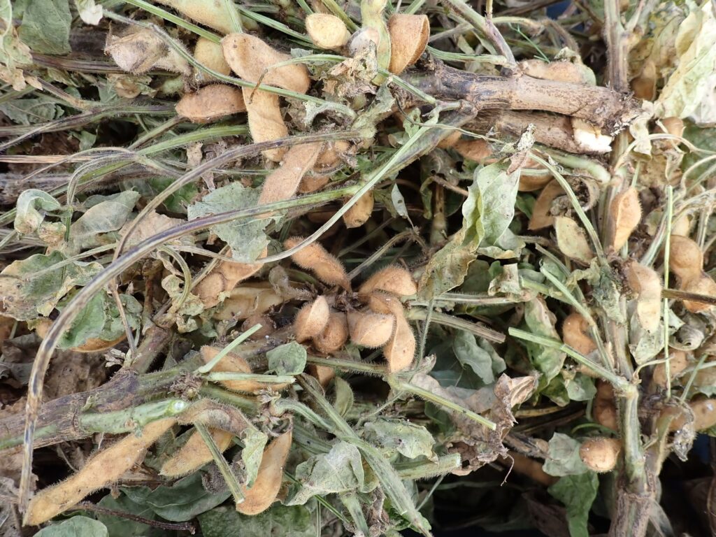 津久井在来は、地面ギリギリのところに豆のサヤができます。それゆえにコンバインなどの機械化が難しく「幻の大豆」と言われるようになった所以も、ひとつはそこにあるのでしょう。大規模栽培に向かない、いかにも里山ならではの大豆なのですね。