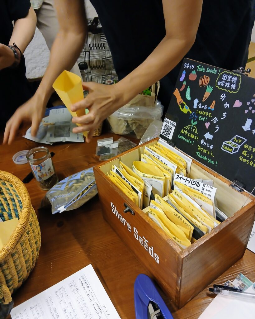 地元の川崎市内の各地やカフェスローに、自由にタネを寄付したり貰ったりできるタネBoxを手作りして置いています。じつは「さとやま農学校」にもタネBOXがあるんです。今年の春に「さとやま農学校」でタネの譲渡会をしたときに末木さんに作って頂きました。