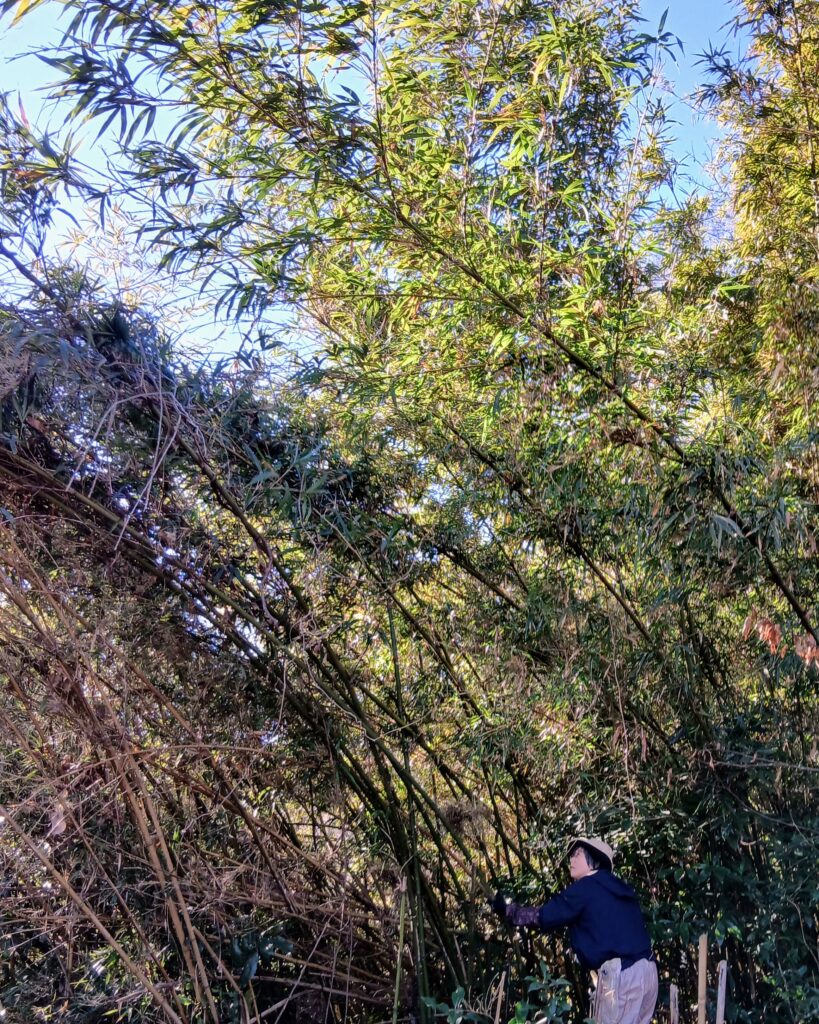 「さとやま農学校」の自主活動で竹を伐っているところです。