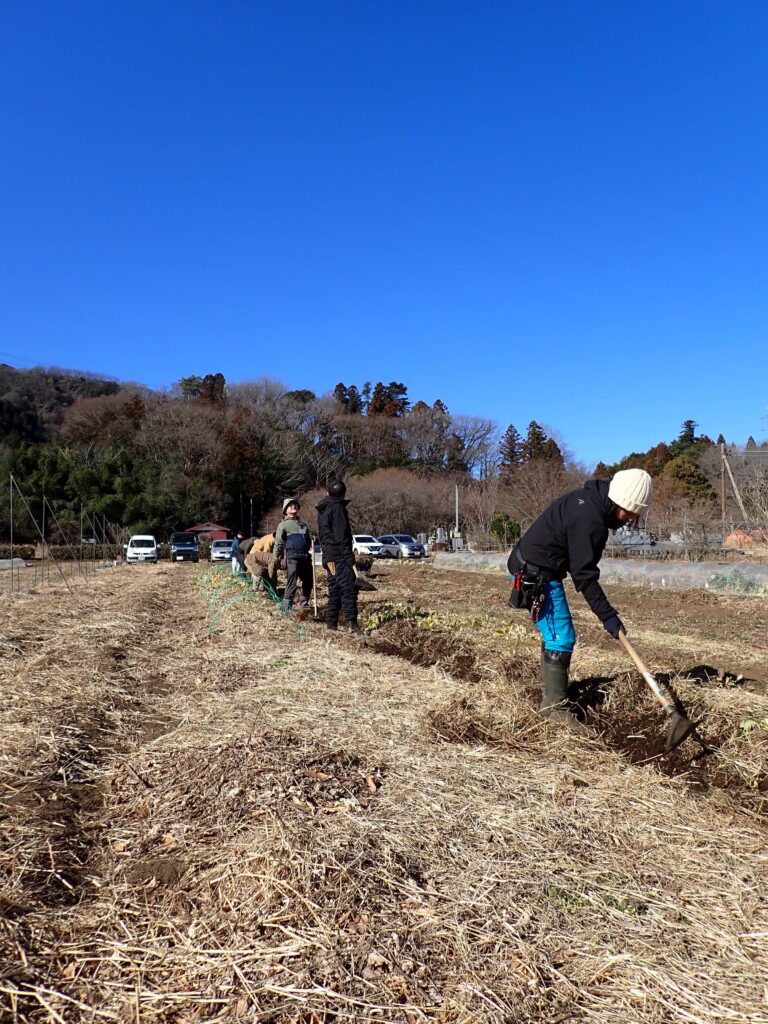 冬の畝立て作業