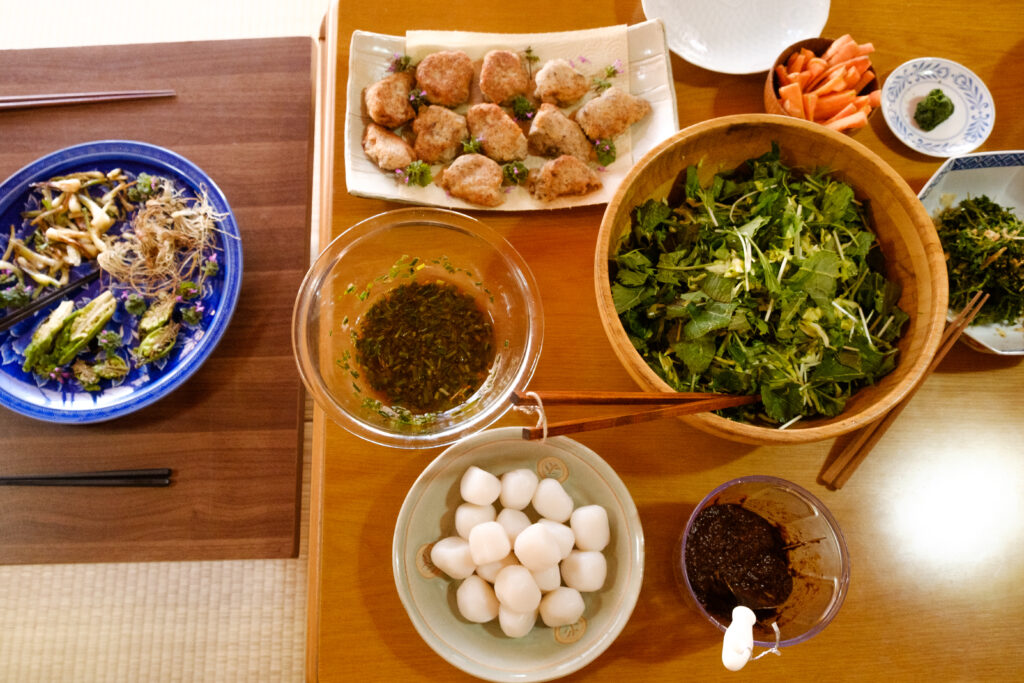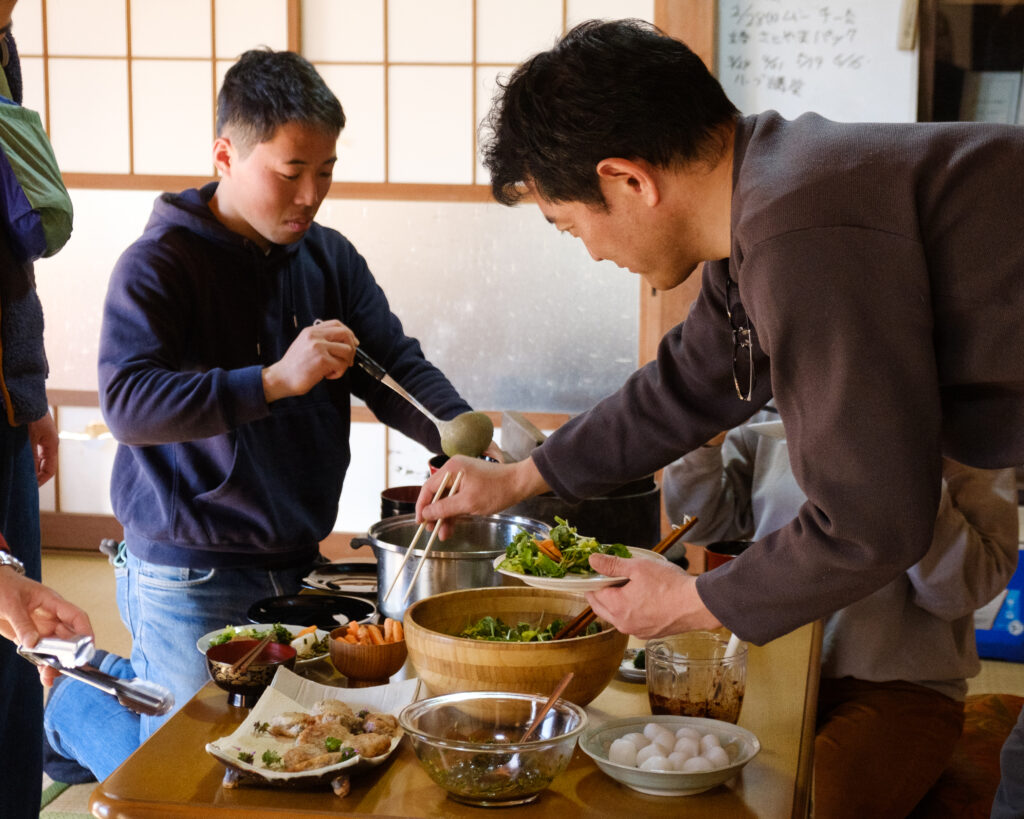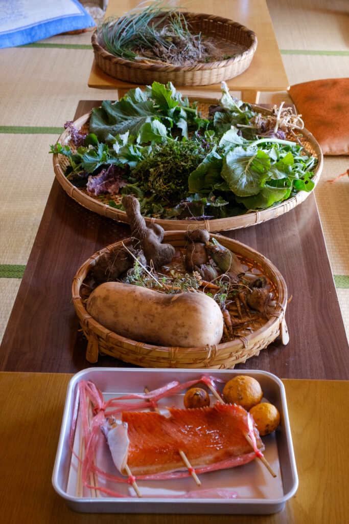 里山の恵みを収穫して、一緒に料理をしていただく。