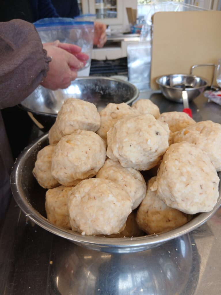 ミンサーを使っても便利なのですが、今回は全員が「手で潰したい」ということでした。