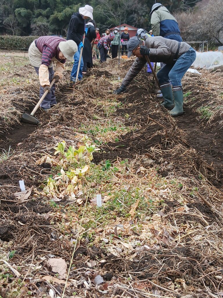 「自然農を学ぶ・さとやま農学校」でも、2月は卒業していく方と、新しく入られる方の入り混じる季節。一緒に畝立てをしました。
