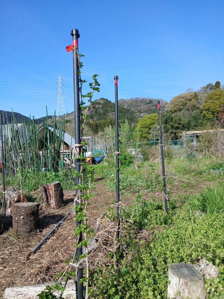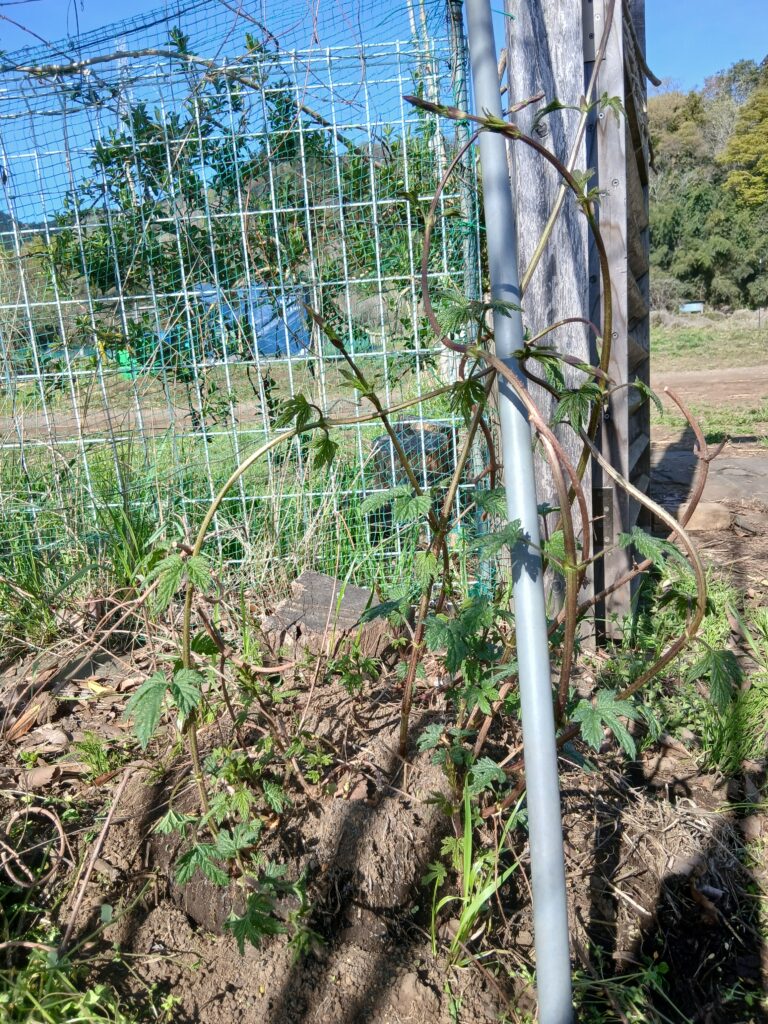 3本並んだウコギは米沢藩の上杉鷹山公が領民に奨励した救荒作物です。普段は生垣にしておきます。これも増やしたい。