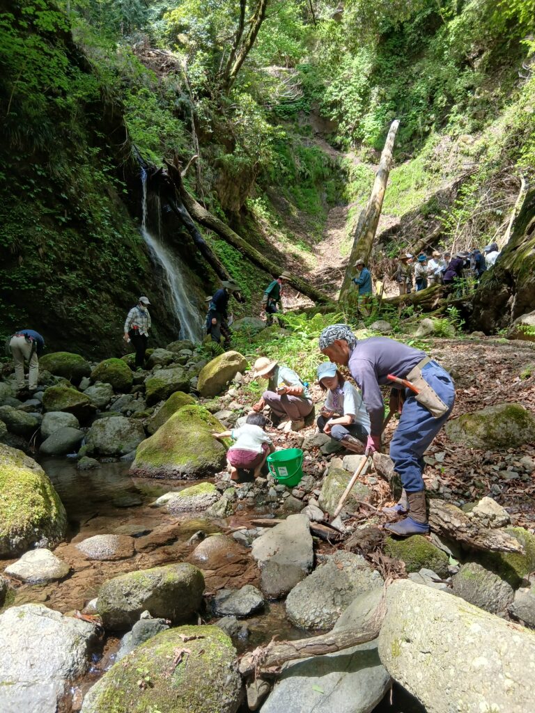 今回は、畑のすぐ近くの沢にフィールドワーク。